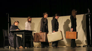In ihrer szenischen Interpretation unterschiedlicher Werke, die sie im Französisch- und Ethik-Unterricht behandelt haben, öffnen sie zunächst die Büchse der Pandora und es entfaltet sich – im wahrsten Sinne des Wortes – ein Panorama unserer Gegenwart: Krieg, Kolonialismus, Völkermord, Antisemitismus, Misogynie, kaltes Machtstreben. Wie sollen wir tagtäglich mit all dem Leid umgehen, dem wir kaum entrinnen können?