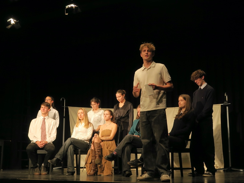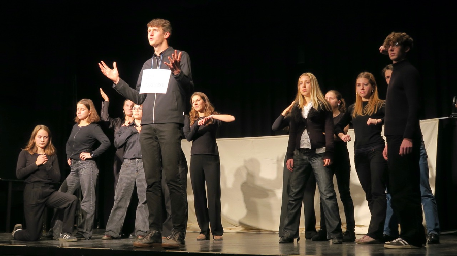 Die Jugendlichen bringen die von Ulli Schönthal, Französischlehrerin im Abibac-Kurs, arrangierten Textauszüge mit erstaunlicher Klarheit und spürbarer Betroffenheit auf die Bühne. Besonders stark wirken die wechselnden Formen: das Schattentheater verdeutlicht in eindrücklicher Form den Genozid in Ruanda, die Standbilder frieren Momente kollektiven Versagens im Kontext der Shoah ein und der Gesang öffnet Räume, in denen Emotionen eine eigene Sprache finden dürfen.